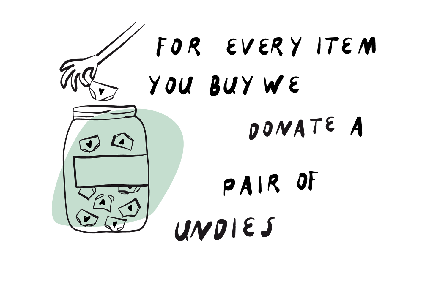 Undies are important to dignity and hygiene. We supply free undies to people in need. One-for-one, every item sold. Every time you buy your undies you are giving to another human. More info